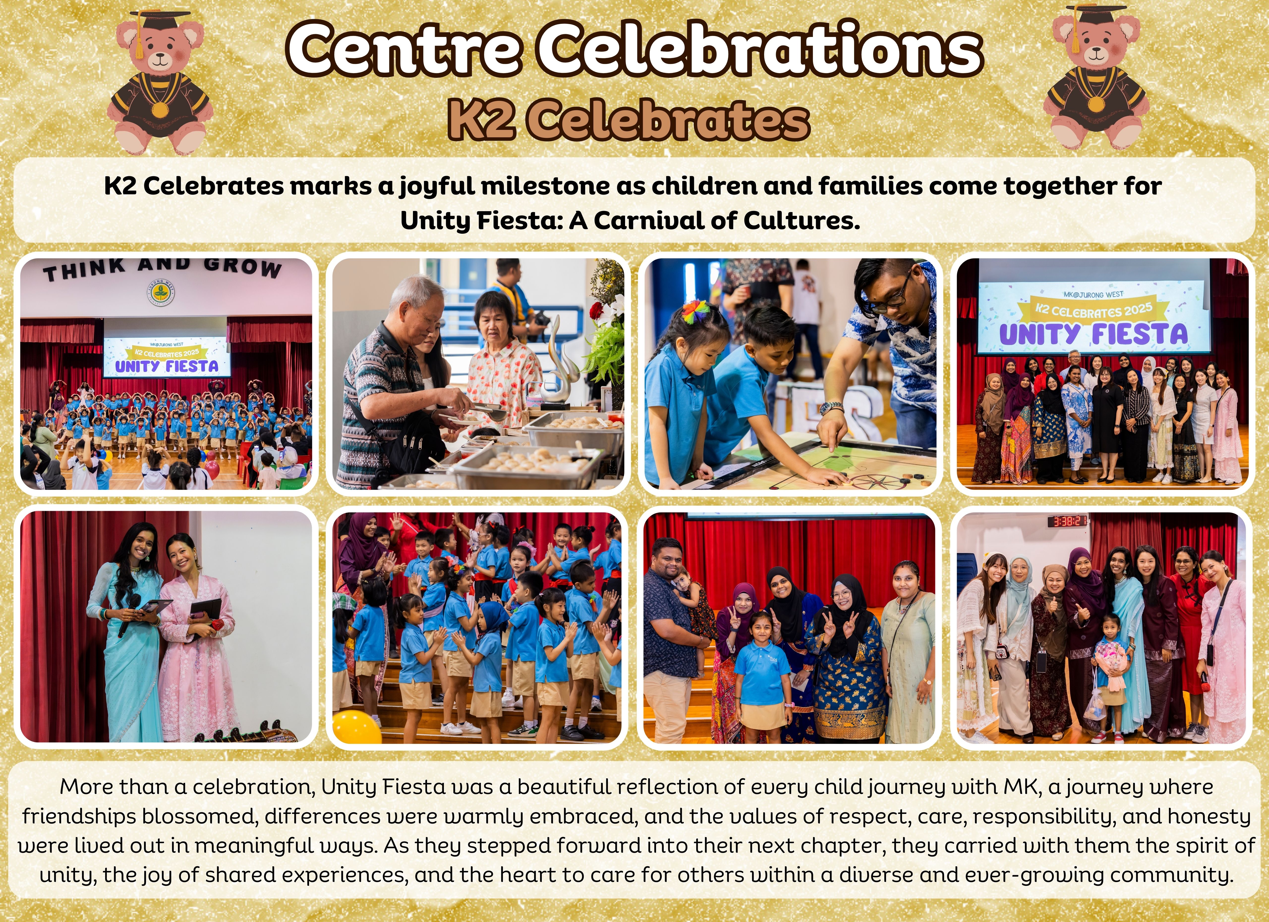 At MOE Kindergarten, we hold special K2 Celebrations to mark the completion of your child’s preschool years. Our celebrations reflect our belief ina holistic view of preschool children’s development.